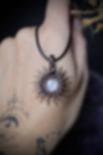 Moonstone Lotus and Moon Copper Pendant